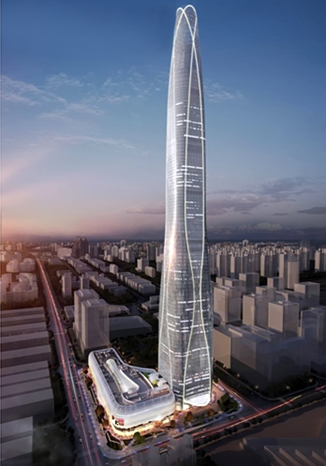 天津周大福又稱“周大福濱海中心”,為中國天津市濱海新區計劃中的綜合物業發展計劃,將建設一座超高層地標式摩天大樓。天津周大福濱海中心發展項目位于天津市經濟技術開發區內,北靠廣達街,南倚第一大街,東臨廣場路,西面新城西路,整個用地為L形。本工程建筑物占地面積比較大,南北長度約185米,東西寬度近171米。總建筑面積39萬平方米。辦公塔樓建筑面積約25.2萬平方米,裙房地上部分建筑面積約5.3萬平方米。地上結構:塔樓94層,大屋面高度約443米,建筑總高度為530米,集辦公、服務式公寓和酒店等功能于一體。塔樓頂冠鋼結構約高86m。裙房地上4層,局部5層,屋面高度約為32m,主要功能為商業,裙房部分采用鋼筋混凝土框架結構體系。地上裙房與塔樓之間設結構抗震縫。地下室共四層,埋深約23.3m,地下室結構不設縫,連成一體。2014年建成后將成為濱海新區第一高度。該項目預計由香港周大福集團投資約80億元。同時還將建設約3萬平方米的樓裙,其中包括4層樓的高級商業購物中心,將匯聚世界知名品牌于此。